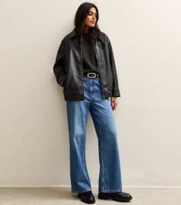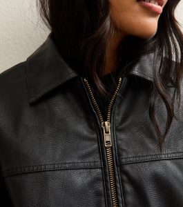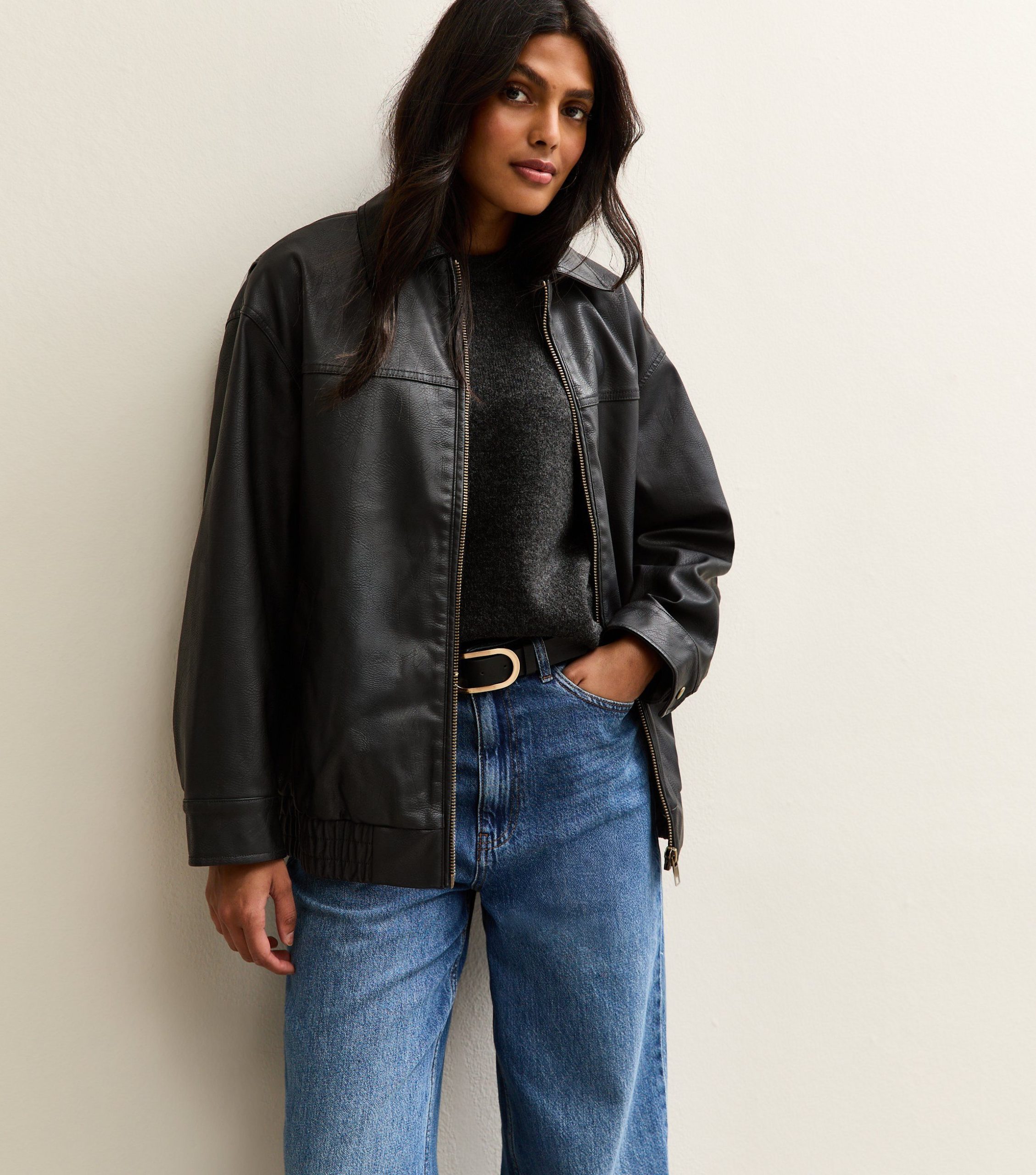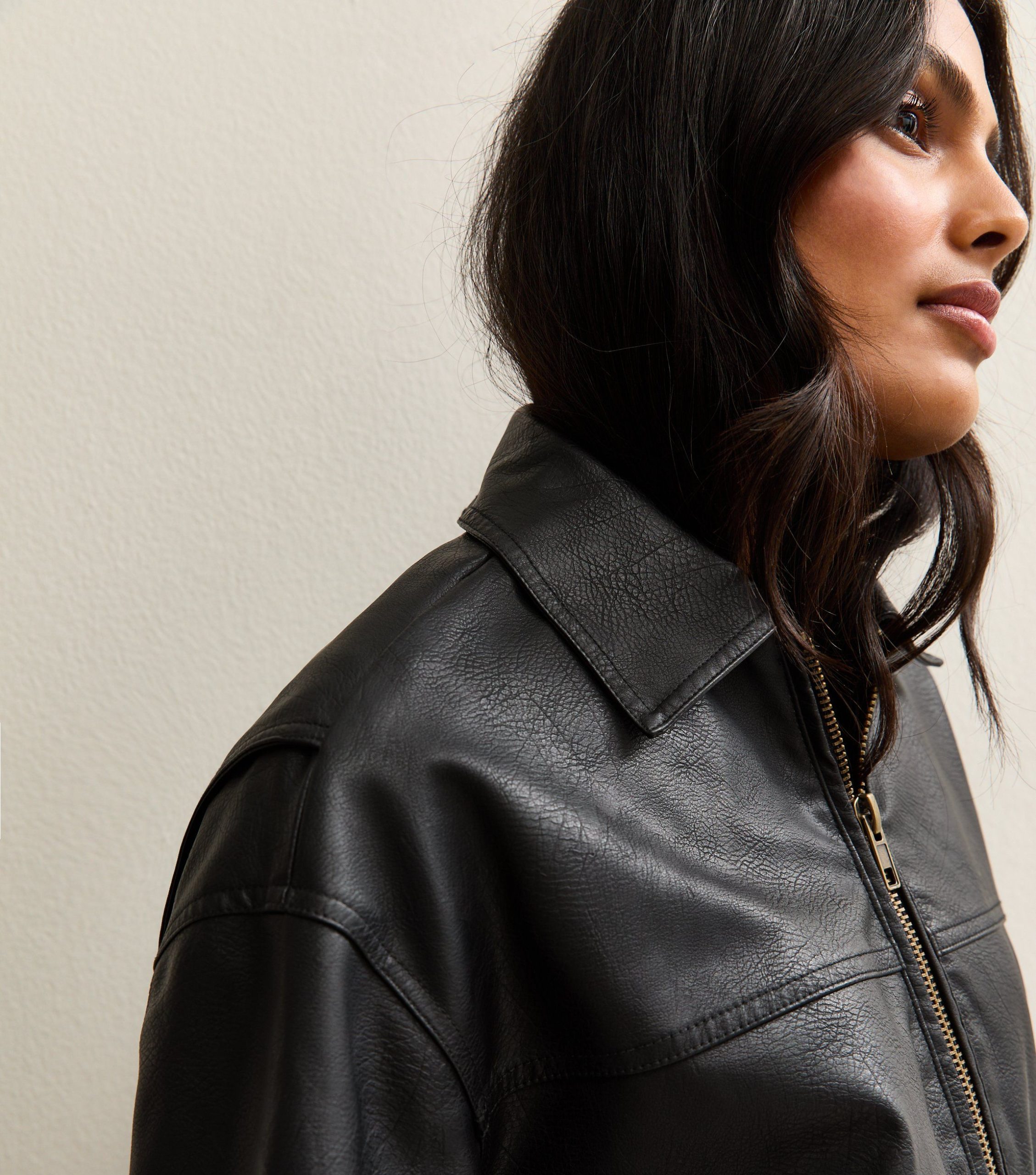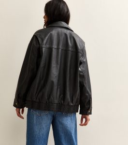 Scaled to an oversized fit, this black jacket offers a stylish and easy-to-wear design. Designed in faux leather with a washed effect for a love-worn feel.