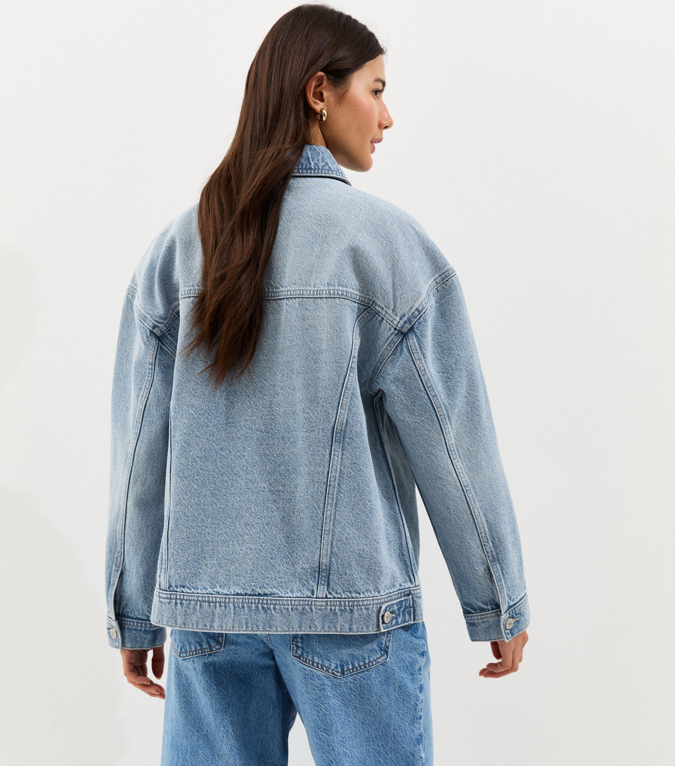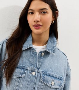 This classic blue denim jacket is a wardrobe essential, perfect for layering on chilly evenings. Its timeless panelled design adds effortless style to both casual outings and smart-casual office looks.