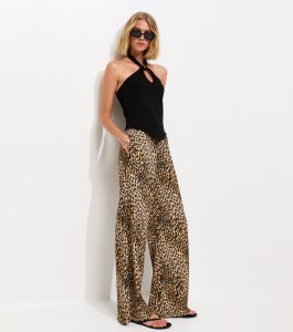 Add some animal print into your summer mix with these brown wide leg trousers. The bold style is made crinkled jersey and features a comfy drawstring waist.