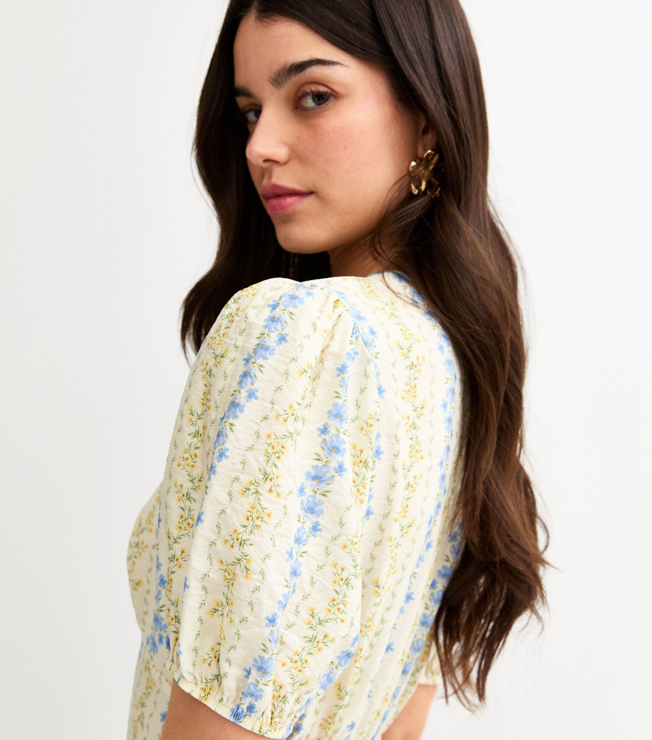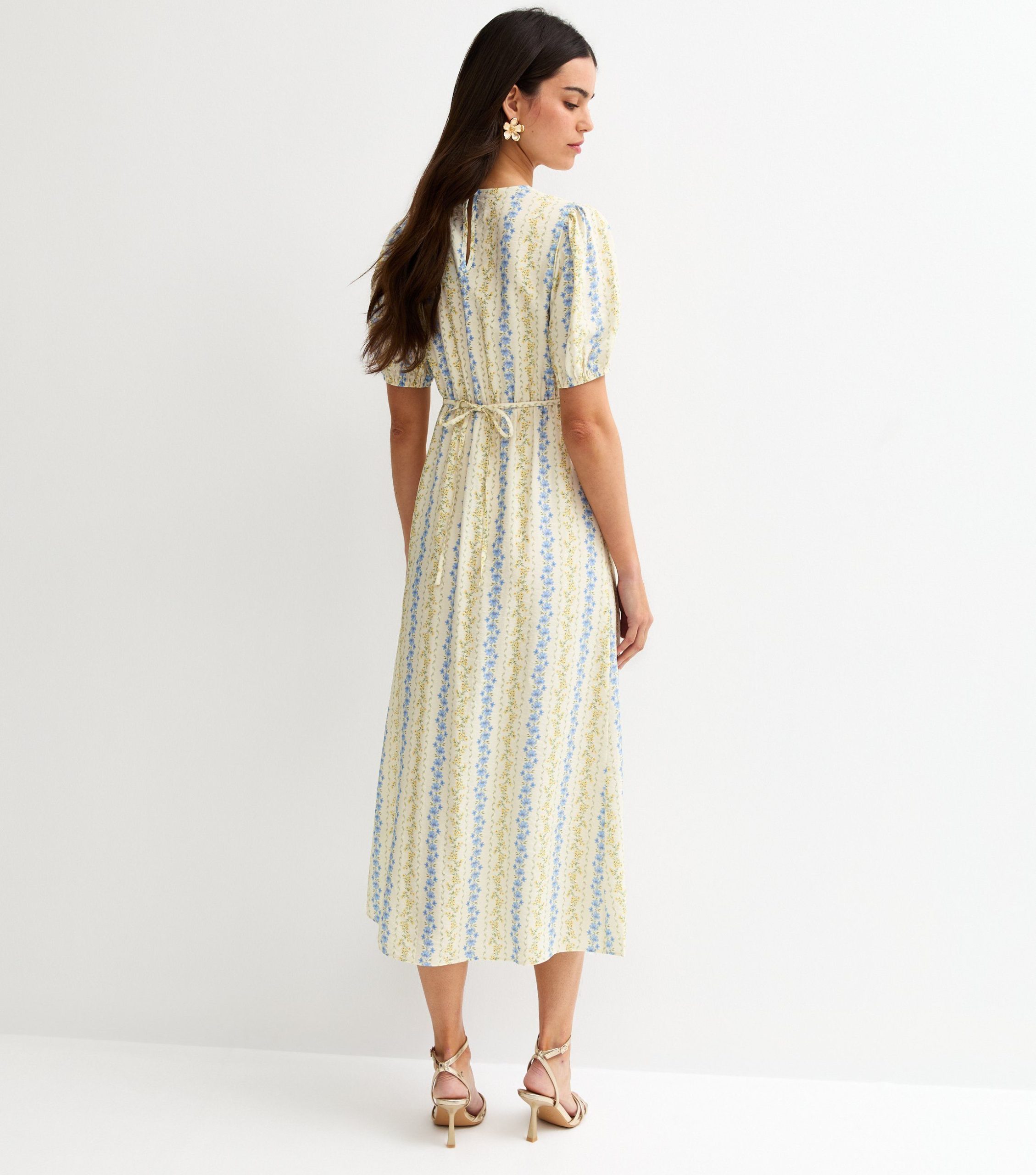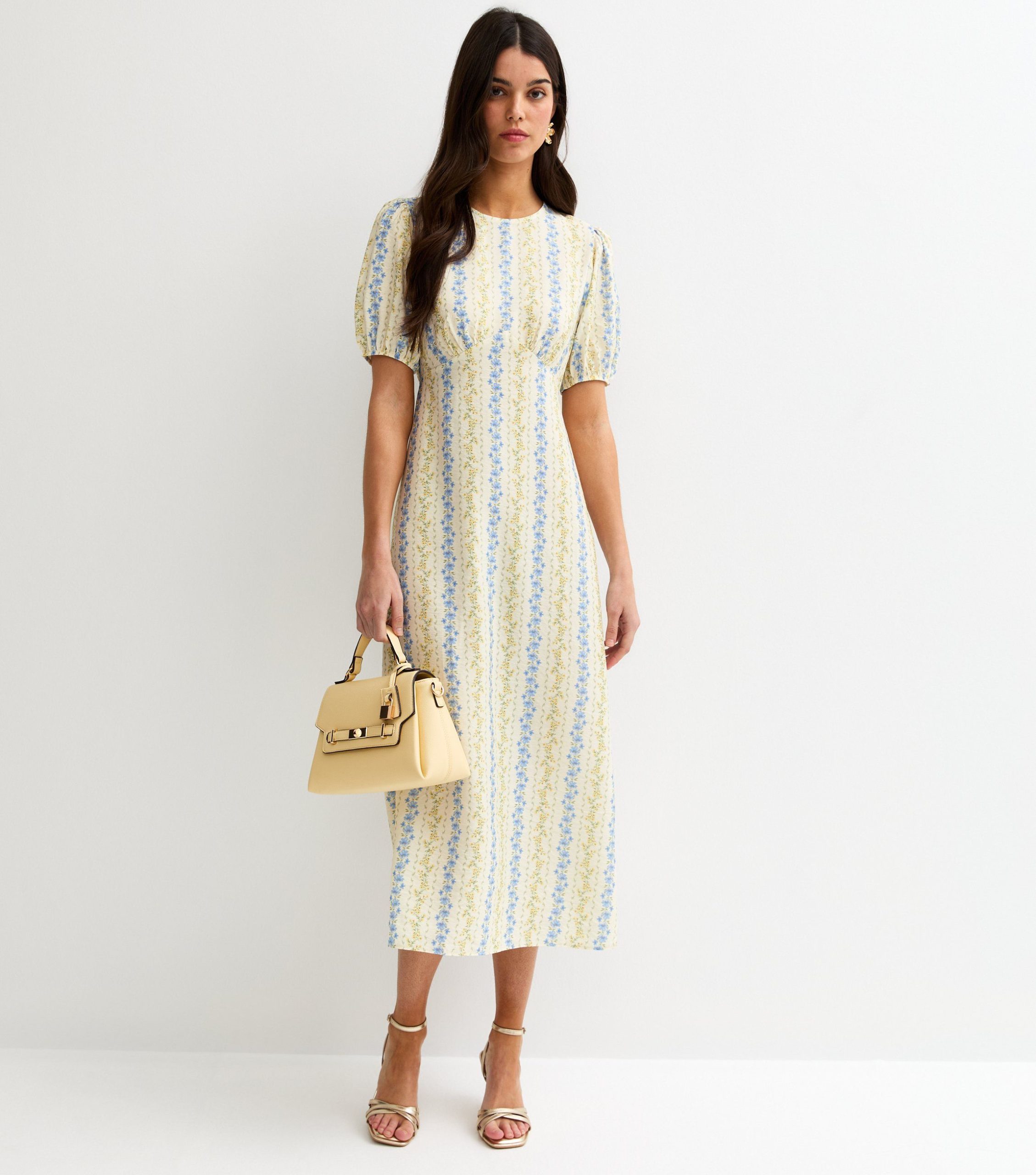 The perfect pick for warm weekends and sunlit parties, this casual midi dress is made for summer. The cream ditsy dress features a floral print and puff sleeves for a dainty look.