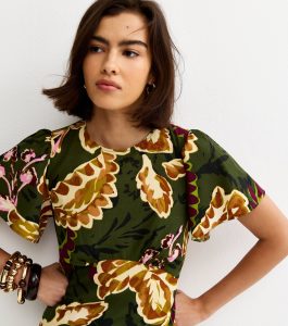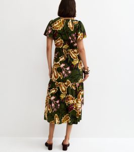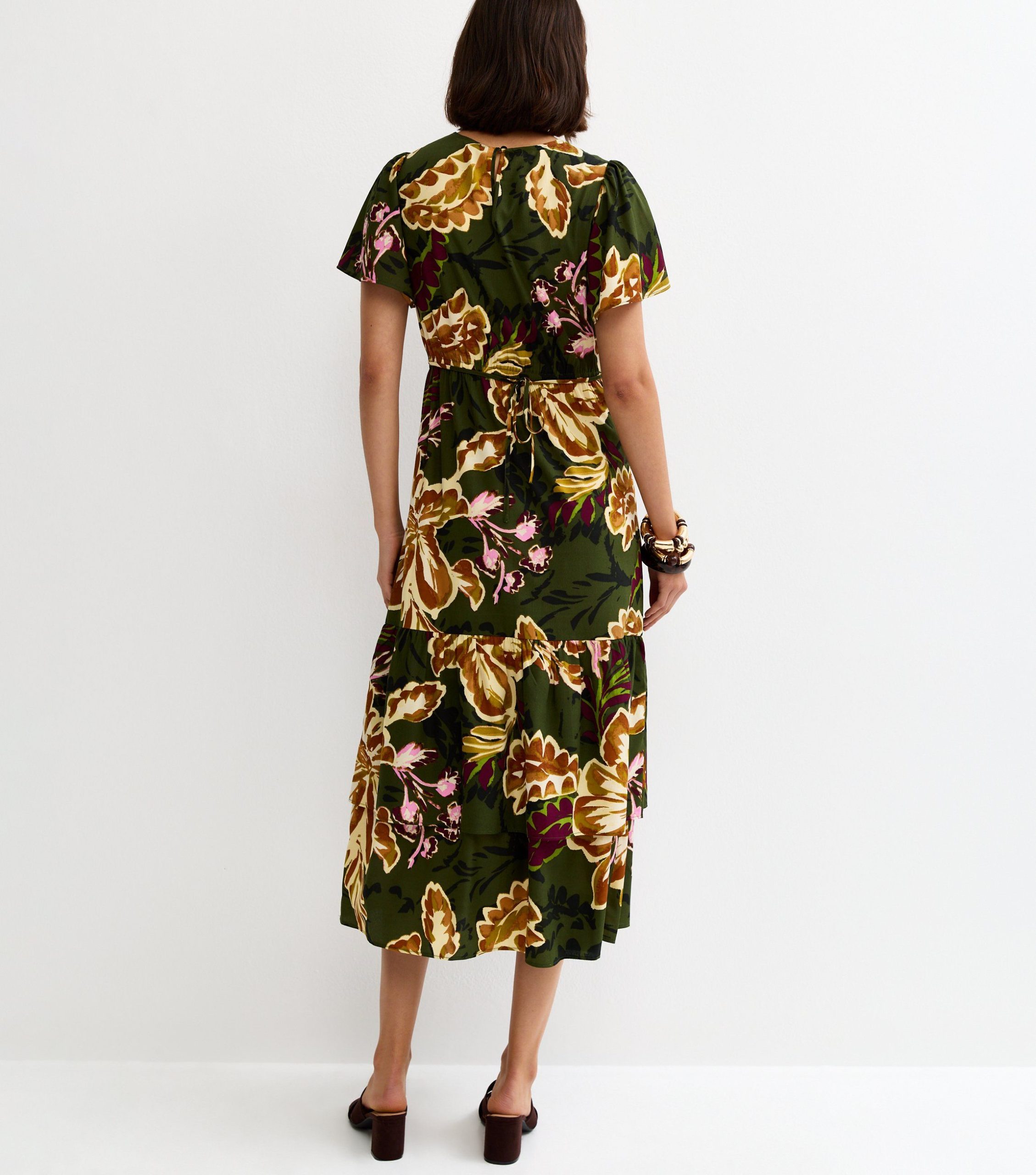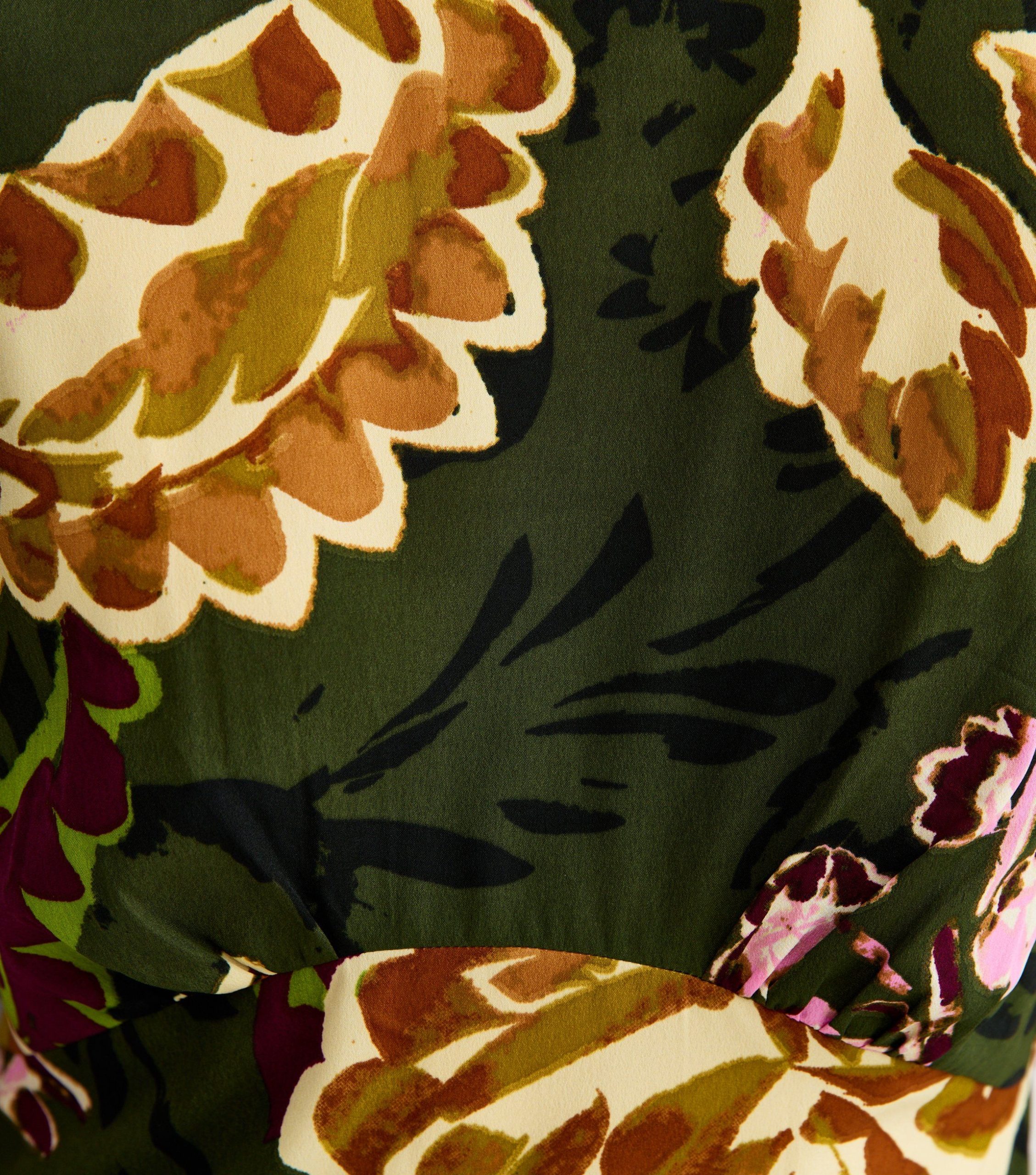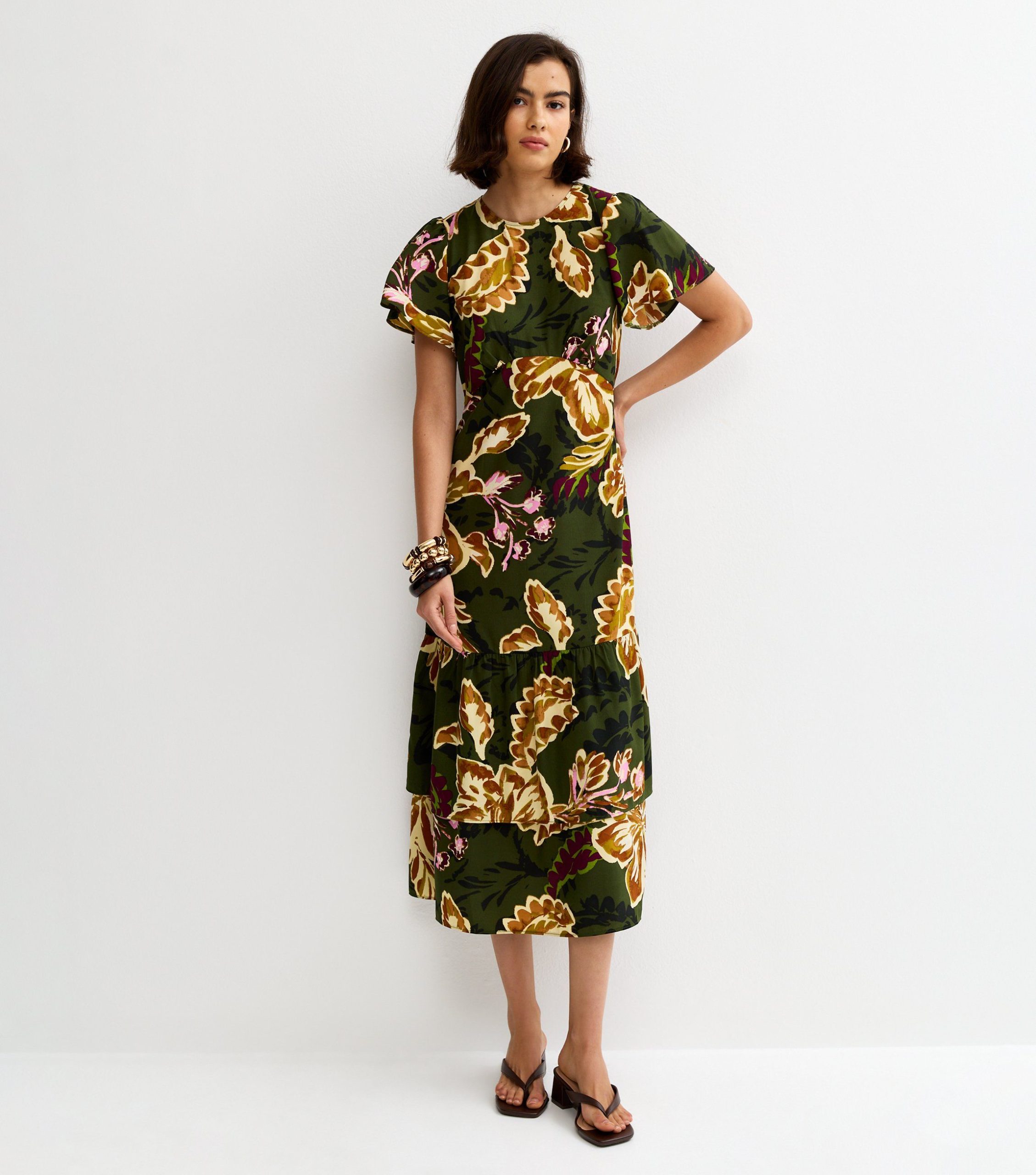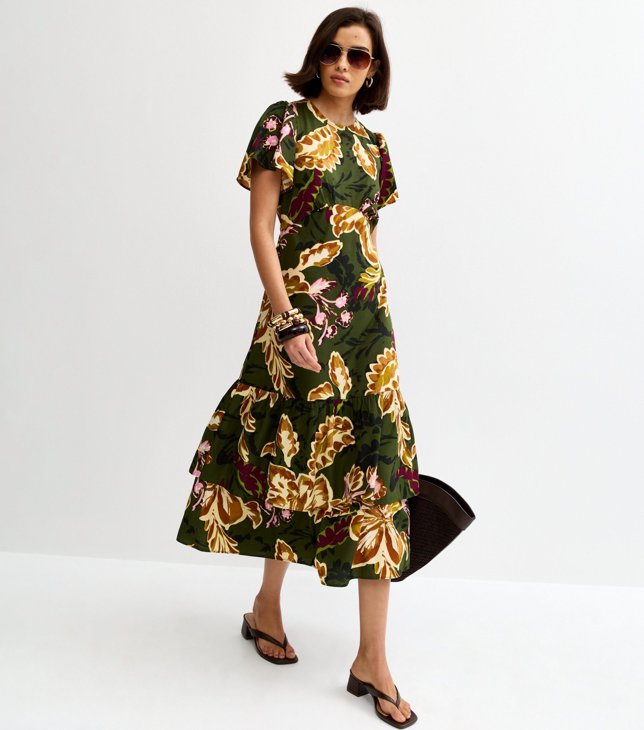 This flowing midi dress combines an eye-catching floral print with a flattering A-line fit. Ideal for styling up or down, it has a layered hem for added flounce.
