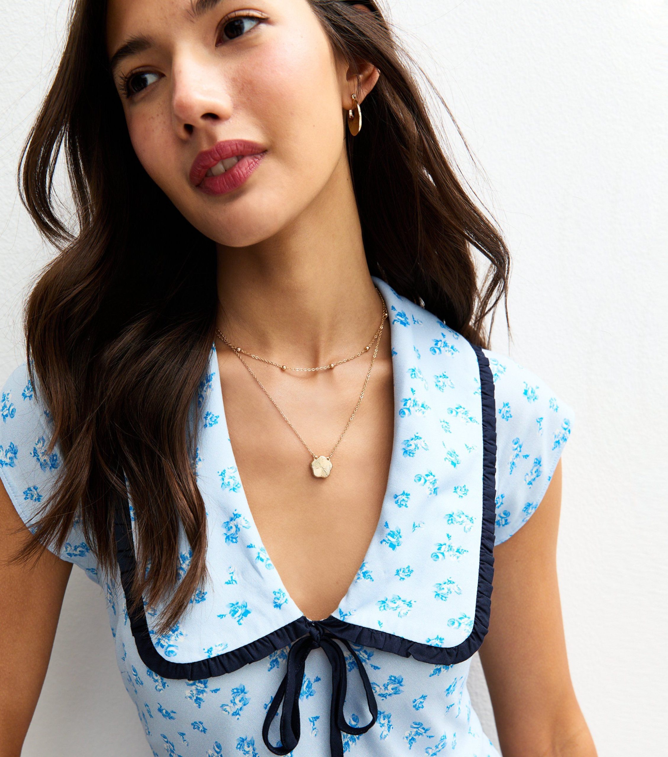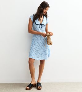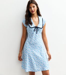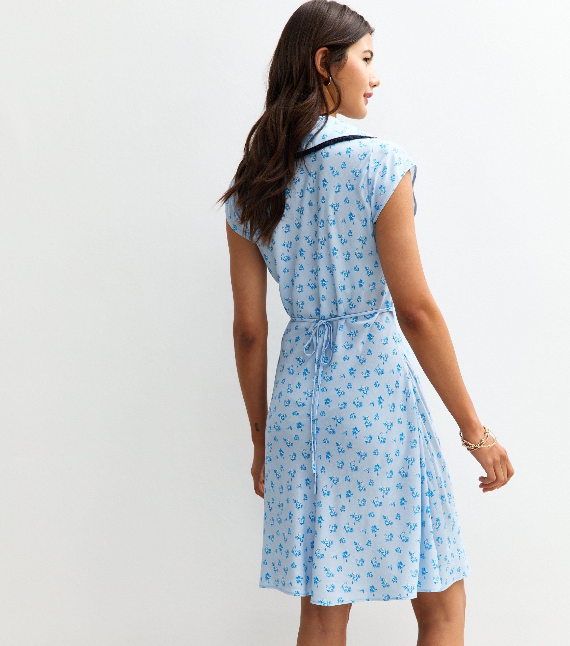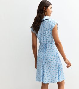 This light blue mini dress is your go-to for breezy summer style. The contrast-trim collar, decorative ties and printed florals bring charm to warm-weather wardrobes.