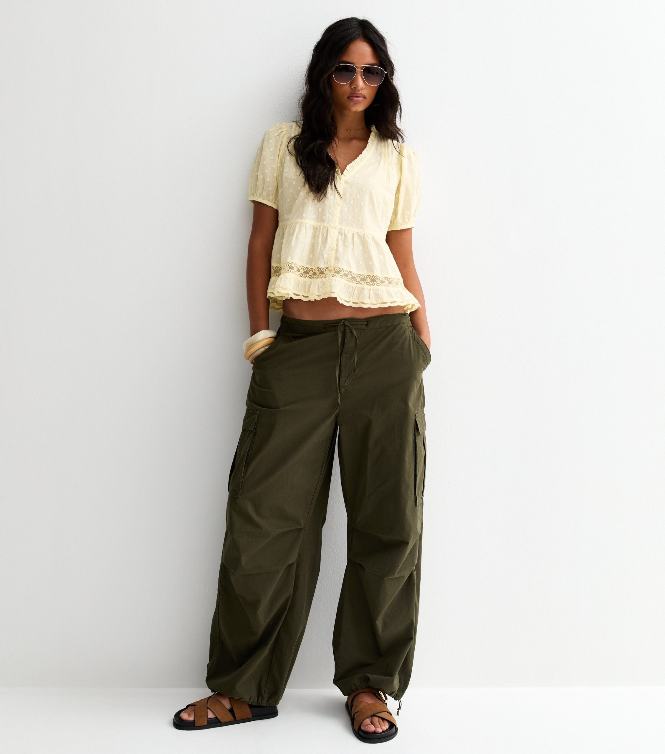 With a speckled pattern and sheer lace panel, you’ll love this lace tea blouse. Its in a soft light yellow its a perfect airy pick.