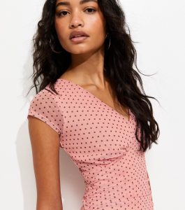 Design: spotty print, ruched waist
