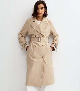 Stone Double Breasted Belted Trench Coat