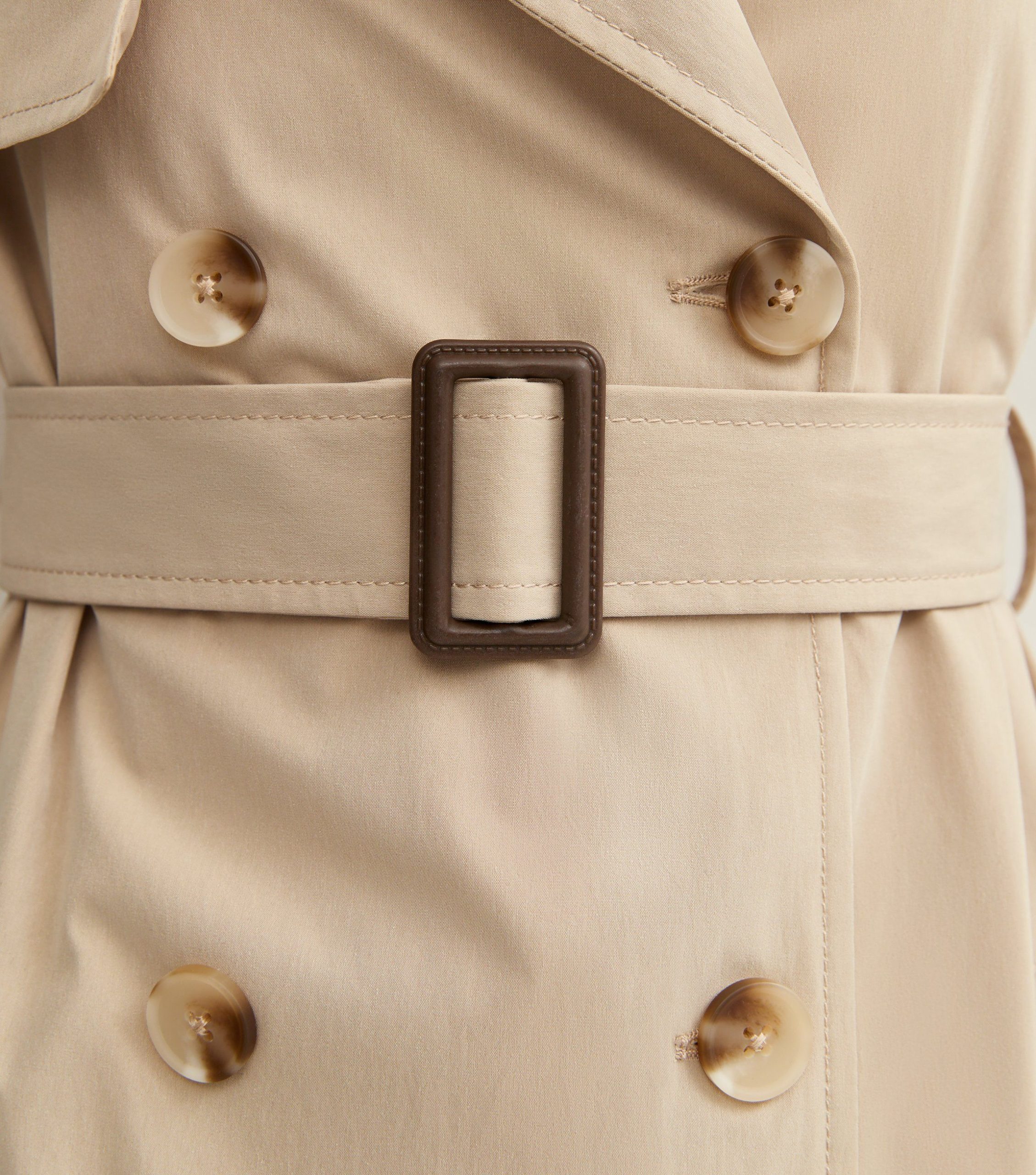 This sleek trench coat is a classic way to create effortless layering in your everyday looks. Falling to a midi length, it suits both formal or off-duty occasions.