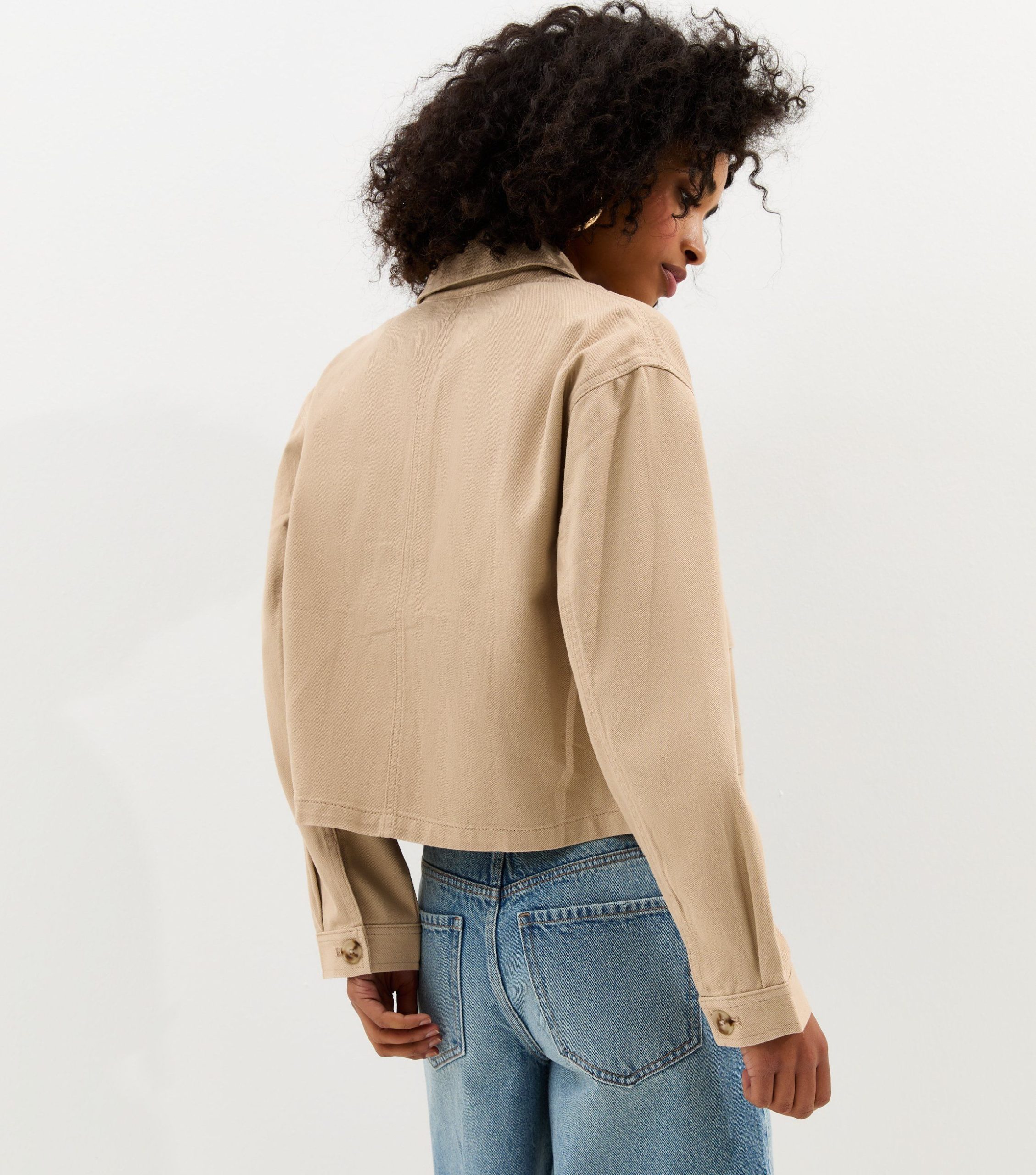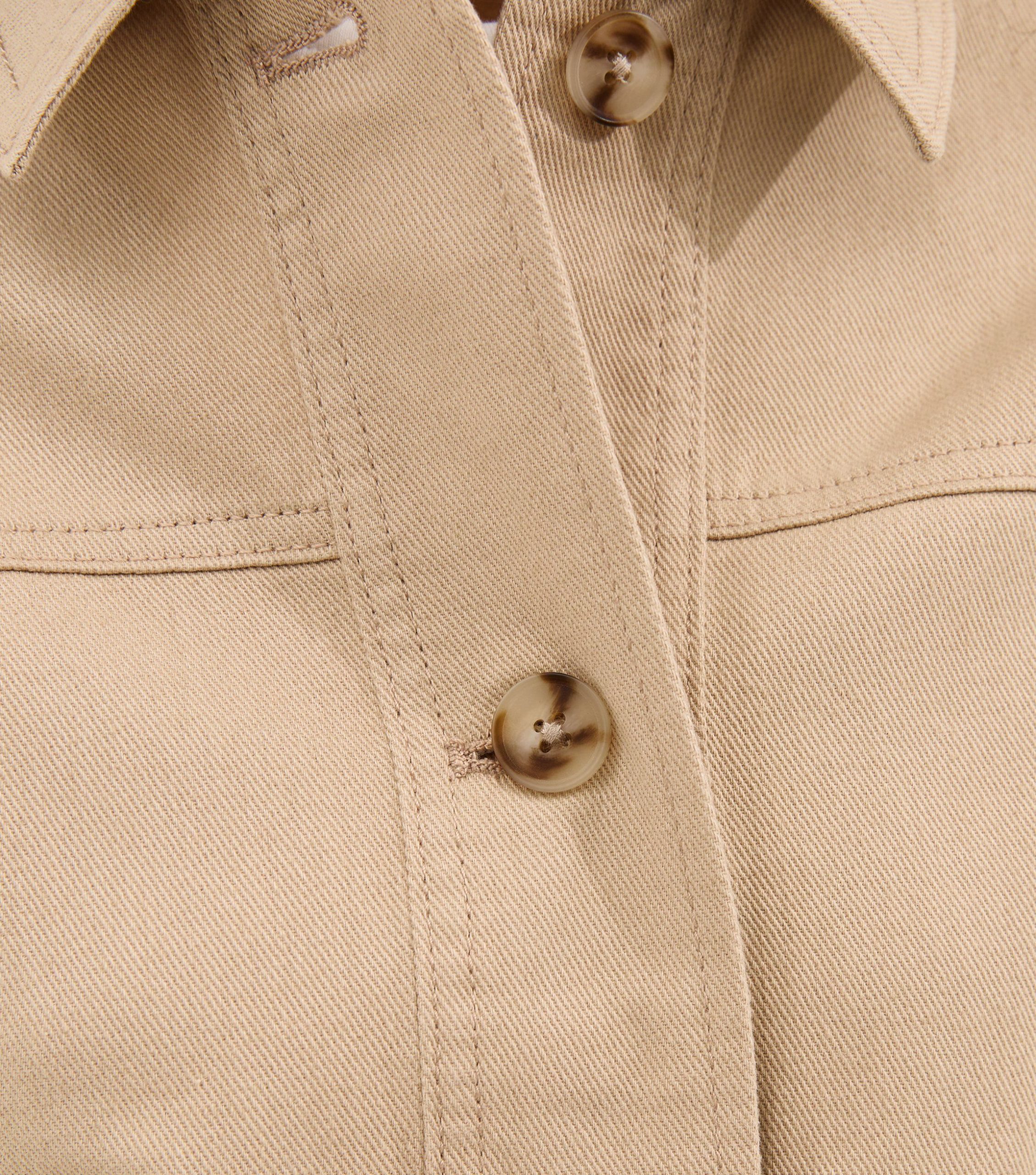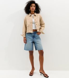 Stay stylishly comfortable with this short shacket, in a neutral stone shade. An essential piece for your everyday wardrobe, it buttons up at the front.