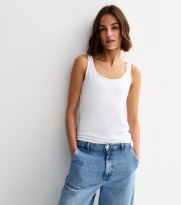 A chic staple, this white cotton vest is a go-to pick on sunny days. Pair the flattering scoop neck style with jeans for an easy everyday look.