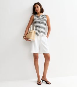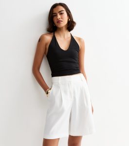 These white shorts have front pleats and back darts for extra shaping. With a longline length and fresh shade, they’re a solid summer staple.